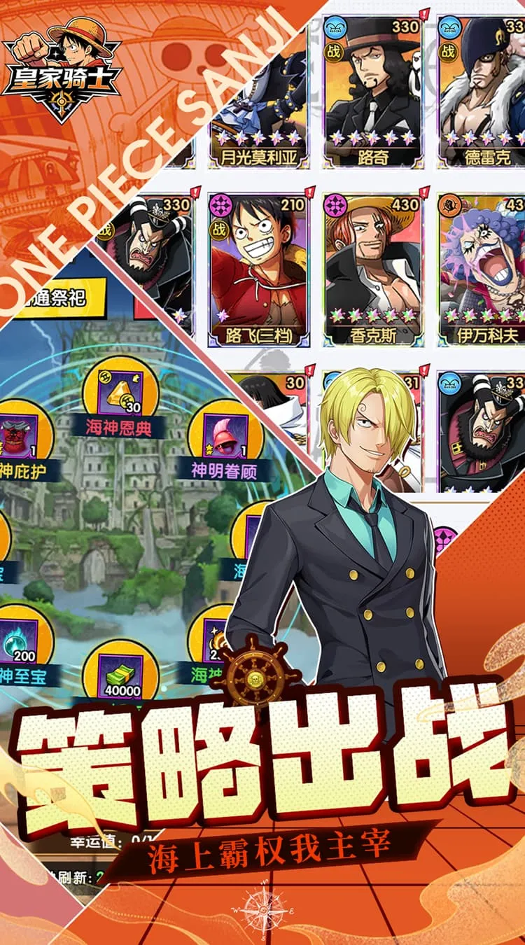 《皇家骑士(0.1折航海大冒险)》是一款热血航海主题的卡牌养成放置手游,更有人气爆棚的海贼角色化身强力伙伴等待你的招募!轻松护肝,挂机变强,在这片浩瀚的蔚蓝大海上开启一段独属于你的传奇航海冒险!