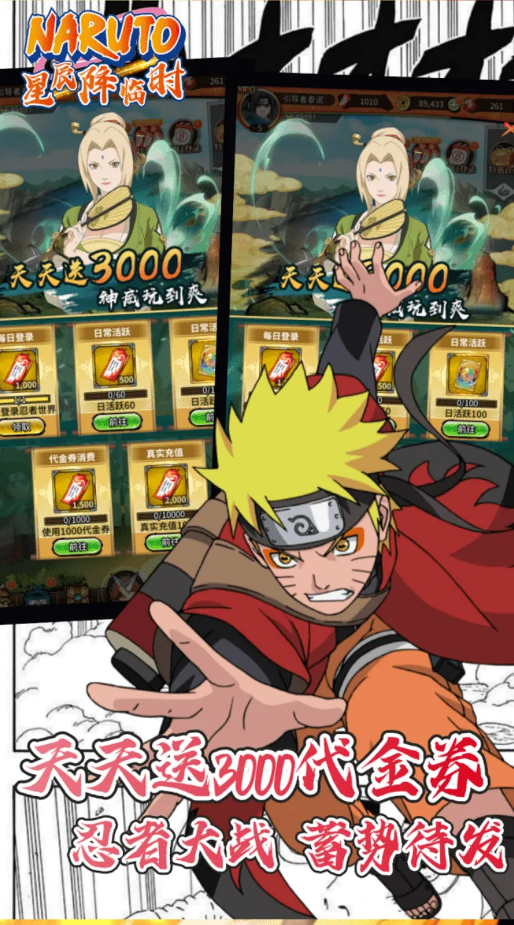 3、每日活跃再送强力忍者自选和2000代金券