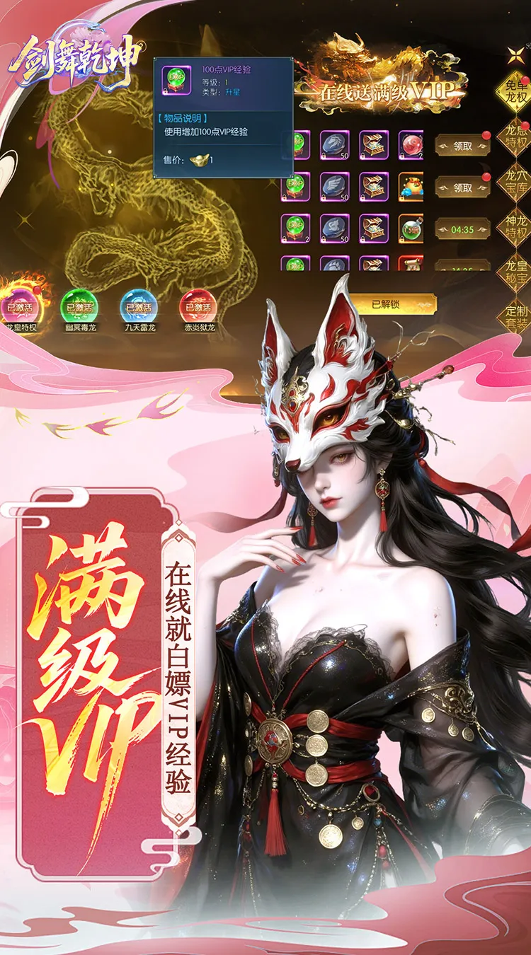 4.【满级VIP】:在线就送VIP经验,不用再怕低人一等!