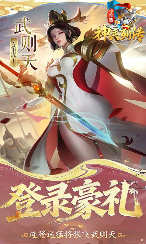 5、【登录豪礼】登录2天送万夫莫敌·张飞,登录5天领四系核心自选,登录7天得四系神兵精华自选,登录8天最终豪礼——顺天女帝·武则天!