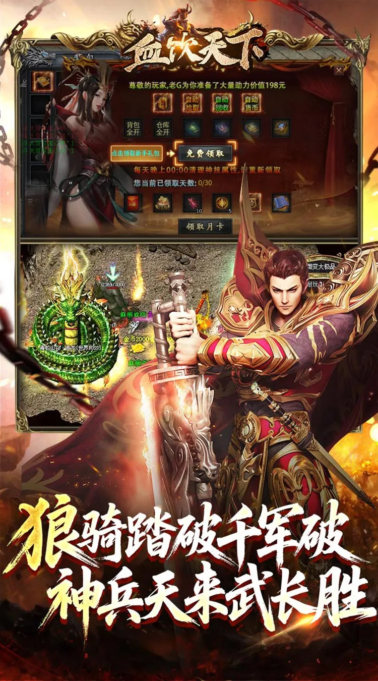 1、上线即送:感恩有你礼包,自动拾取,自动回收,骑术技能,月卡礼包!