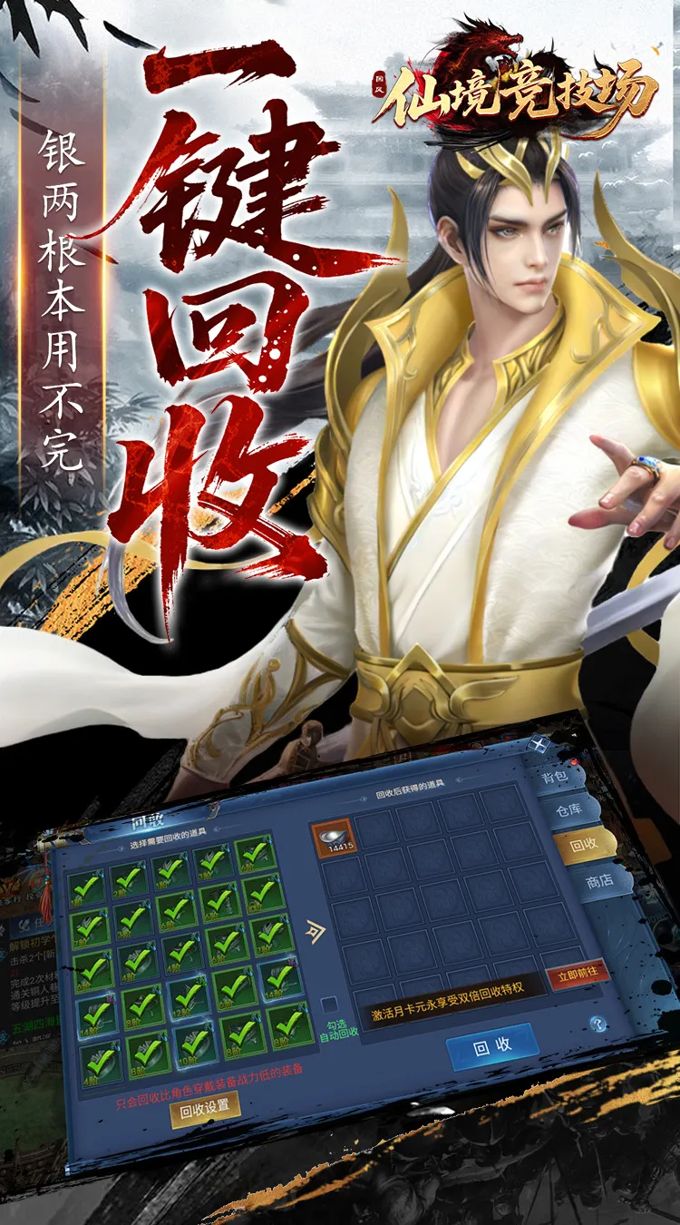 ★十倍BOSS爆率全面开放,极品装备和稀有材料疯狂掉落,结合无限回收系统,轻松获得用不完的银两和资源