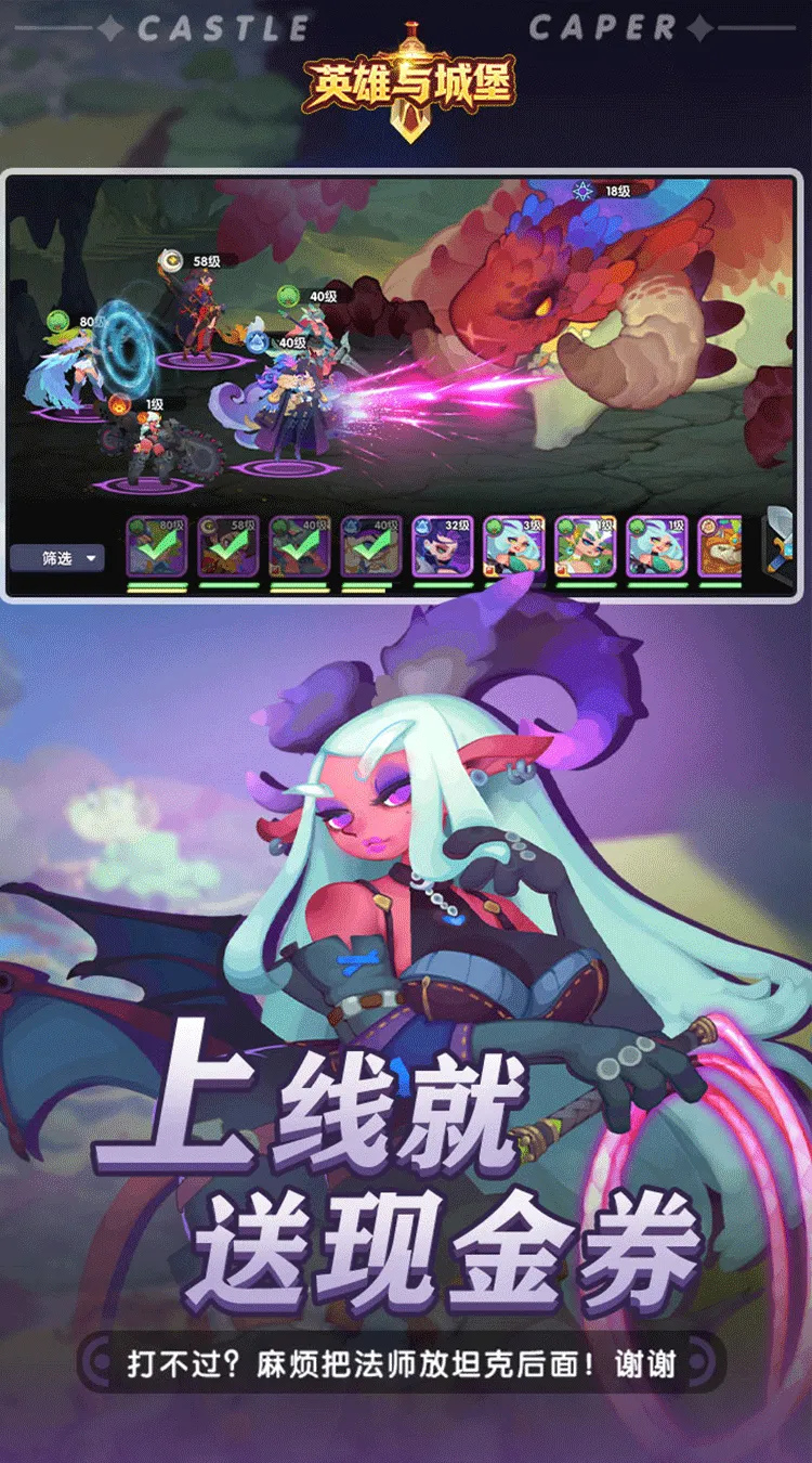 《英雄与城堡》是一款以英雄收集养成和城堡建设为乐趣的冒险卡牌0.1折手游。清新潮流的画风,六大阵营,超过100个英雄可供选择。探索世界!迷宫冒险!城堡建设!在这里,你有多种途径培养你的英雄队伍!在崩坏世界中守护最后的净土。